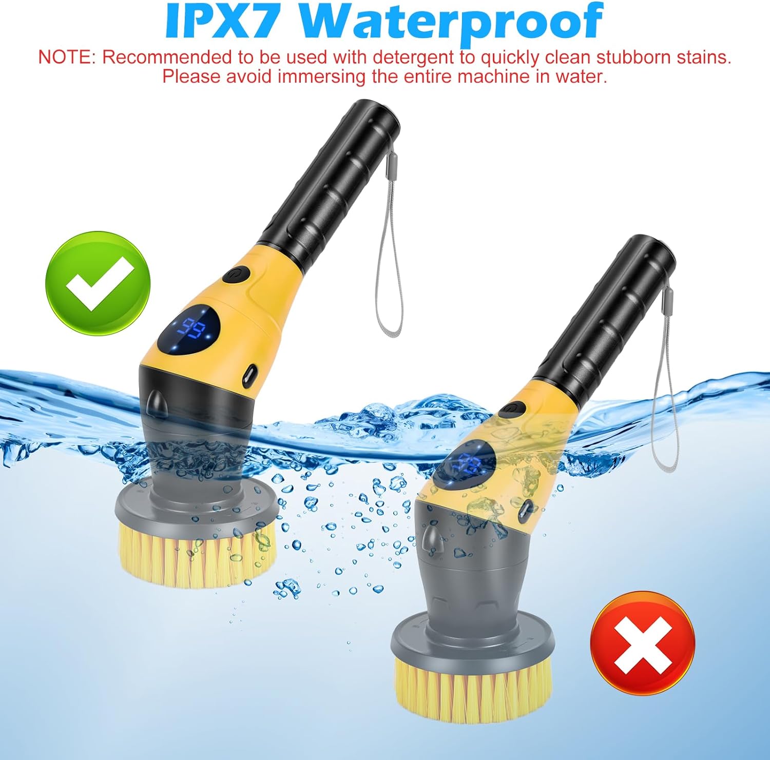 - 【3 Adjustable Speeds】electric spin scrubber has 3 adjustable rotation speeds to clean soap scum, dust or stubborn stains in minutes. Long press for 3 seconds to select 400 RPM low speed mode for daily cleaning, short press to switch to 420 RPM mode for medium cleaning, and short press again to switch to 460 RPM mode for deep cleaning. You can choose different speed intensities according to the degree of stains, perfectly meeting all your cleaning needs.