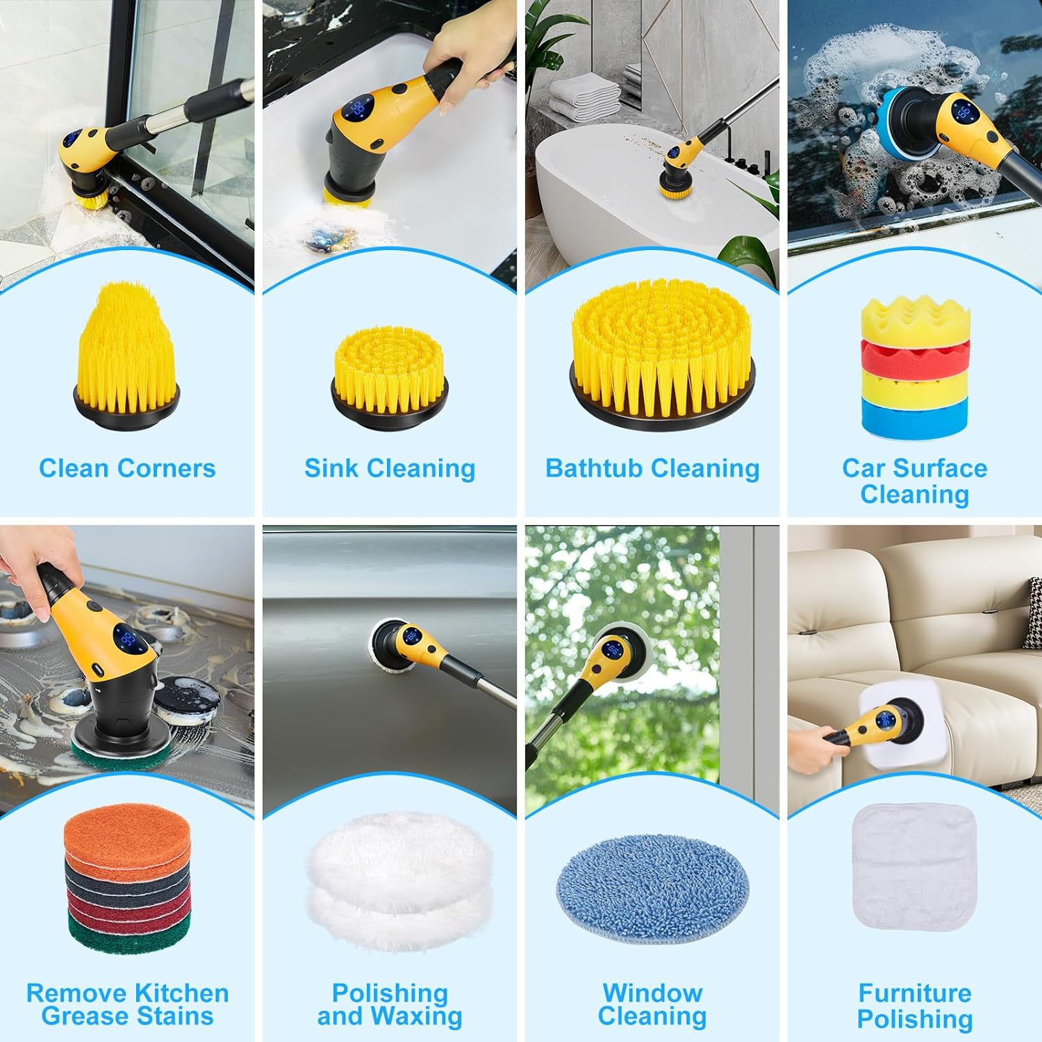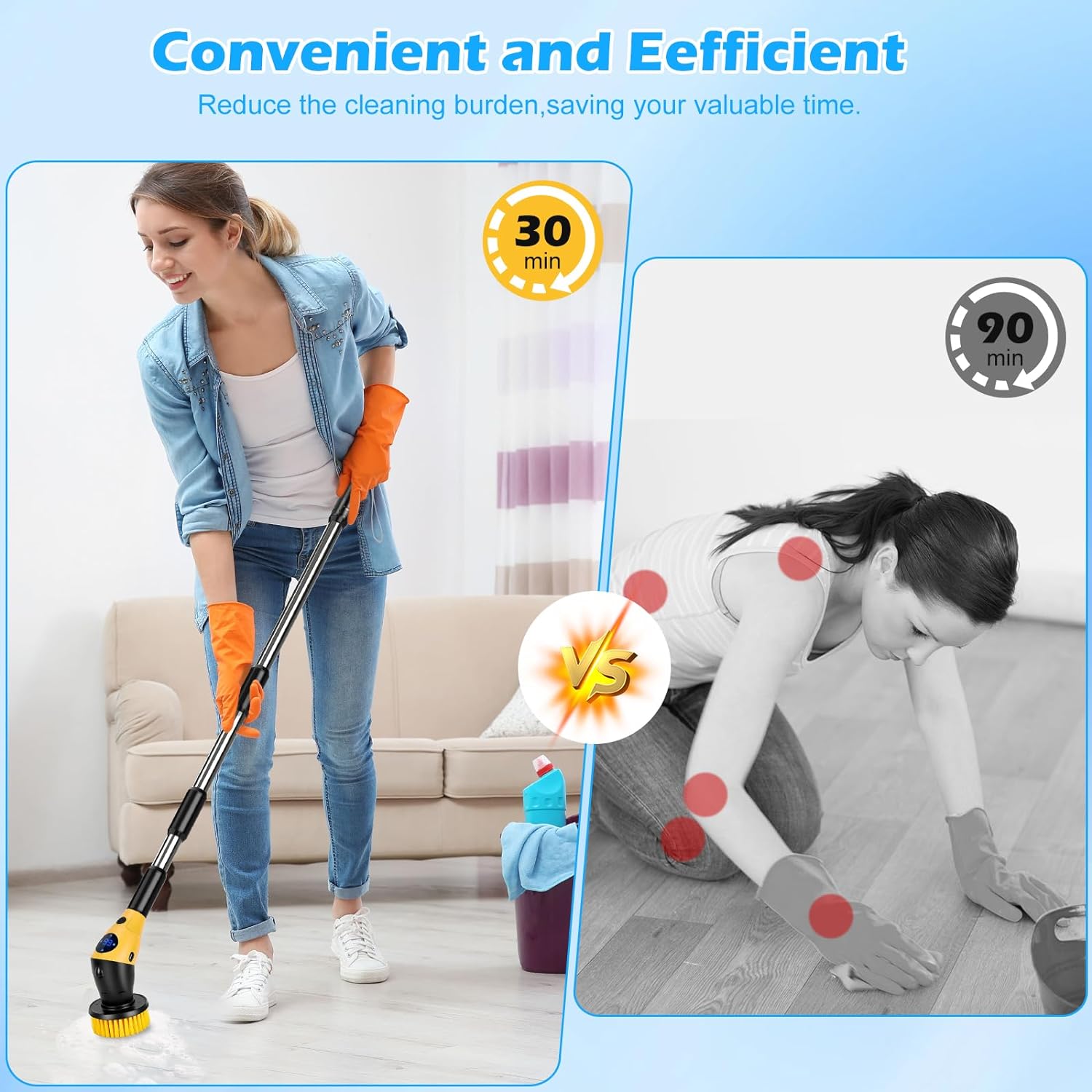 Make cleaning easier and more comfortable with Electric Spin Scrubber. No more bending or kneeling, which is especially helpful for the elderly and those with waist problems. Save time and effort with this new type of household cleaning tool. It's also a great gift for parents and friends.
