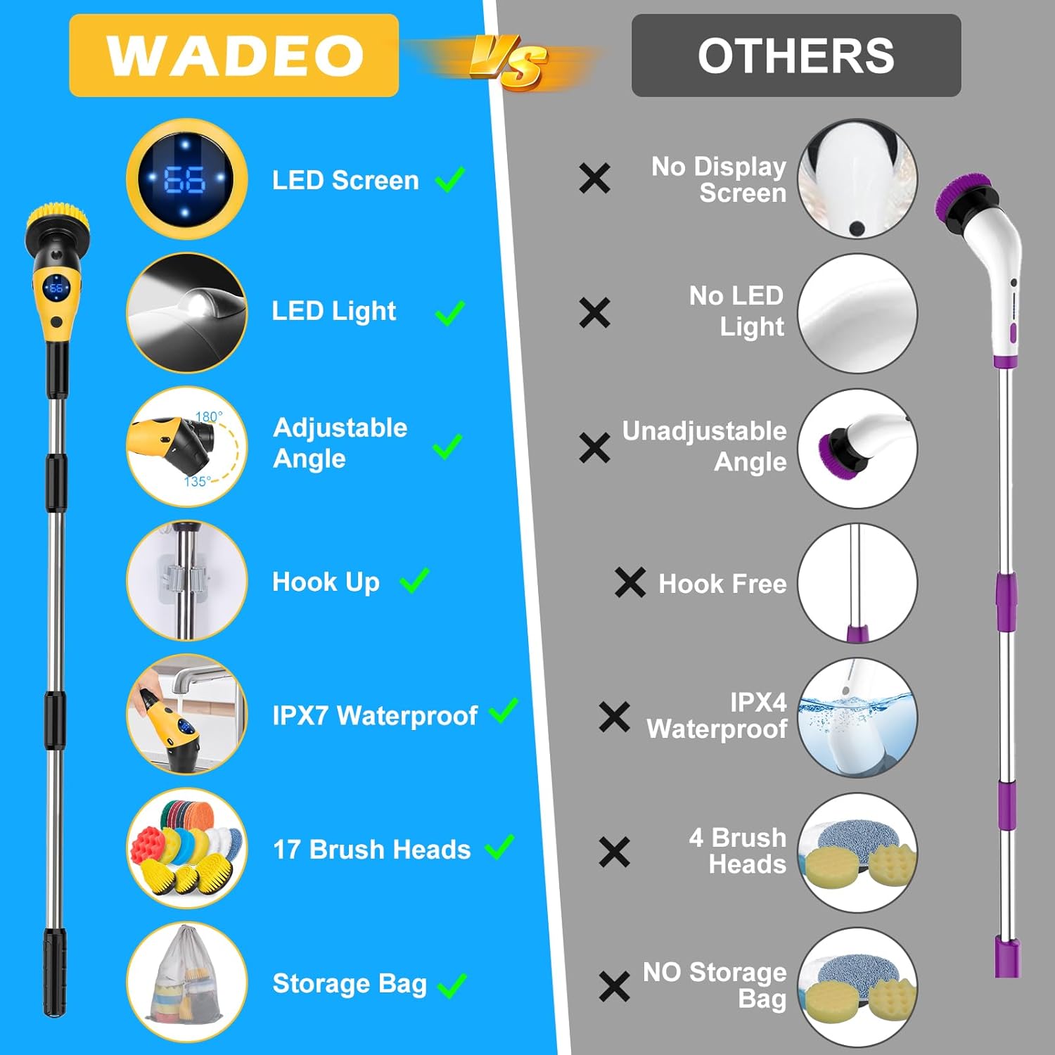 Clean your entire house with ease using WADEO Electric Spin Scrubber. The internal motor drives the rotating brush head to rotate at a high speed up to 460RPM, making it perfect for cleaning shower bathrooms, bath tu...
